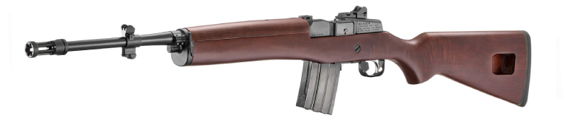 Drawing inspiration from the U.S. Army's M14 battle rifle chambered in 7.62 NATO, the Mini-14 adopted both visual styling and nomenclature elements from its military predecessor. However, the rifle's operating system borrowed mechanical principles from the legendary M1 Garand, creating a unique hybrid design scaled for the smaller .223 Remington/5.56 NATO cartridge.
