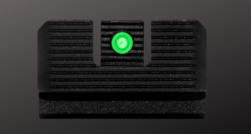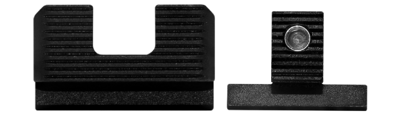 The rear sight ledge accommodates one-handed slide manipulation, adding tactical utility to the sight system. This feature proves valuable in emergency situations or when primary hand function is compromised.